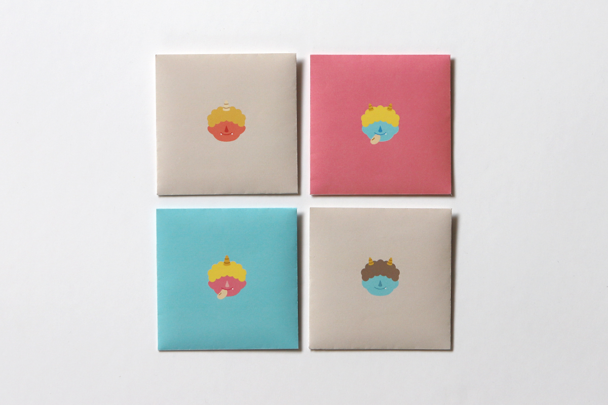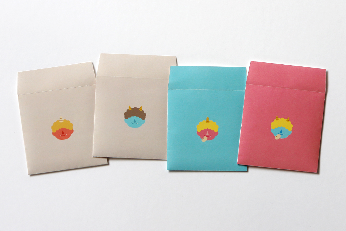 節分の豆まきでお使いいただける、オリジナルデザインのお面と豆袋をご用意しました。