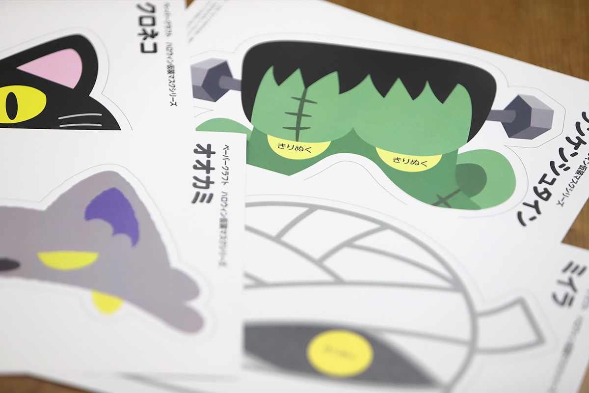 ハロウィンの仮装などにぴったりな、モンスターの顔を模したマスクです。ご家庭や個人のご利用でしたら、無料で自由にお使いいただけます。そのままお使いいただけるカラー版と、色塗りから楽しめる白黒版もご用意しました。